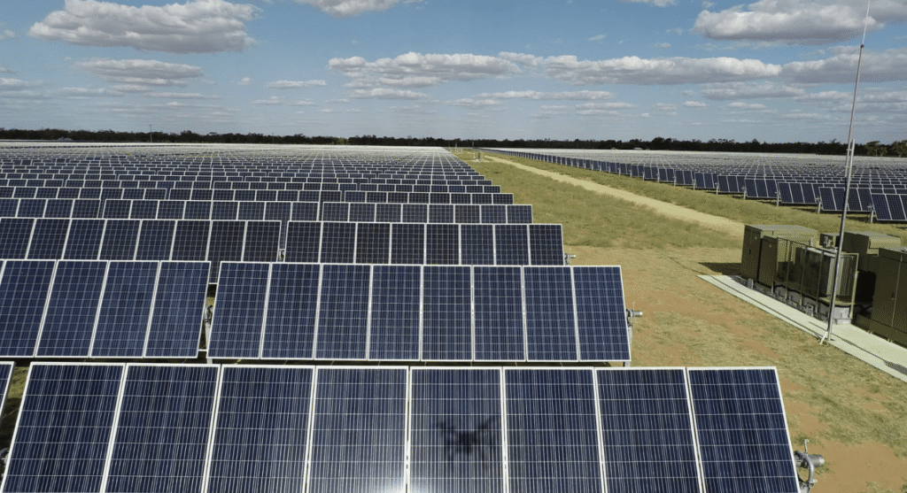 A solar farm  also called a solar power plant or solar field  is a large-scale facility made up of numerous solar panels designed to produce electricity from sunlight. These installations often include thousands of photovoltaic (PV) panels arranged in rows across wide areas of land. Each panel contains solar cells that absorb sunlight and convert it into usable electricity. The generated power can then be supplied directly to the grid or stored in batteries for later consumption.